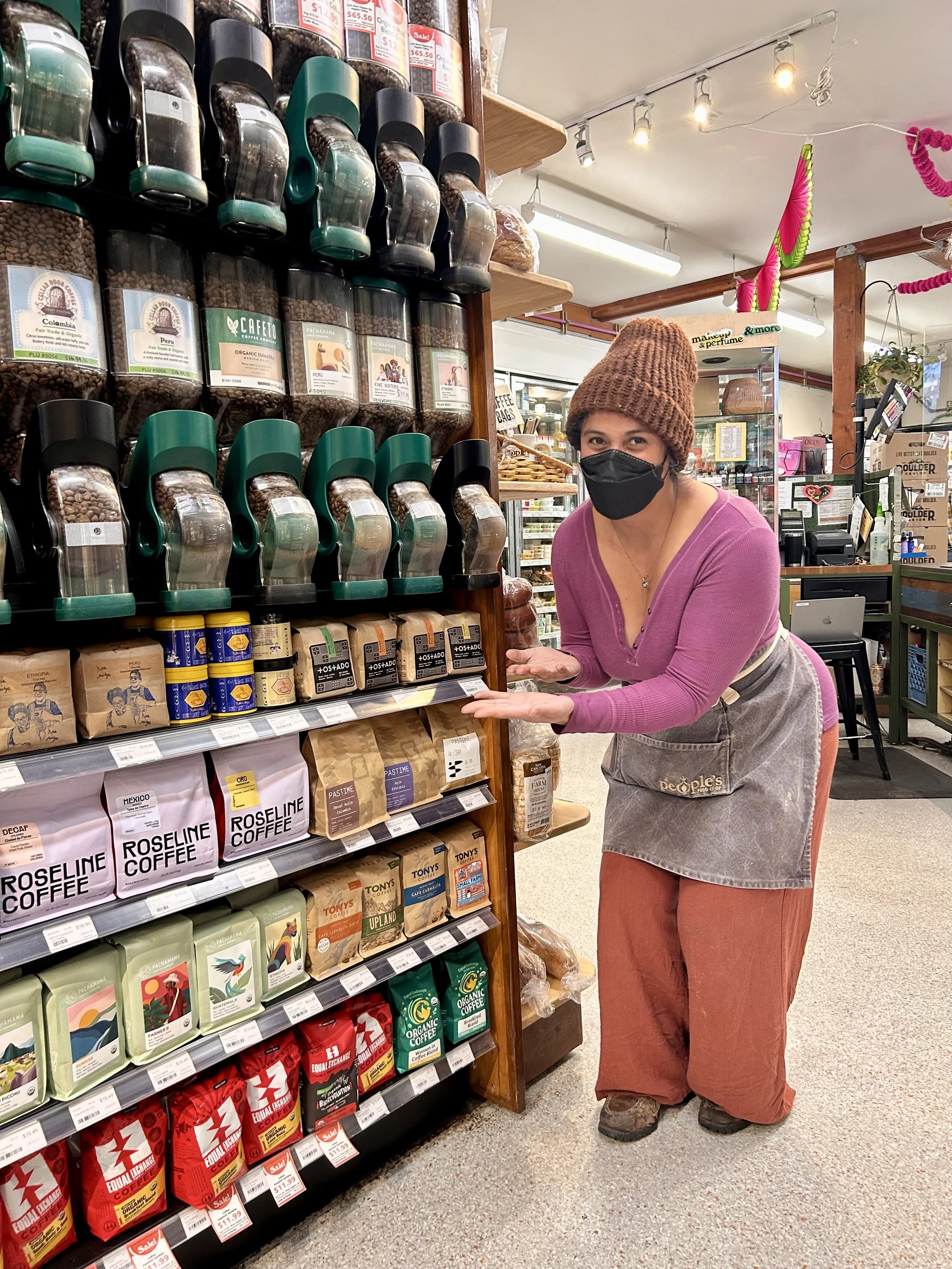 We have a new shelf filled with coffee from local BIPOC businesses! Pictured is our coffee buyer, Zahra, who is excited to share the news!