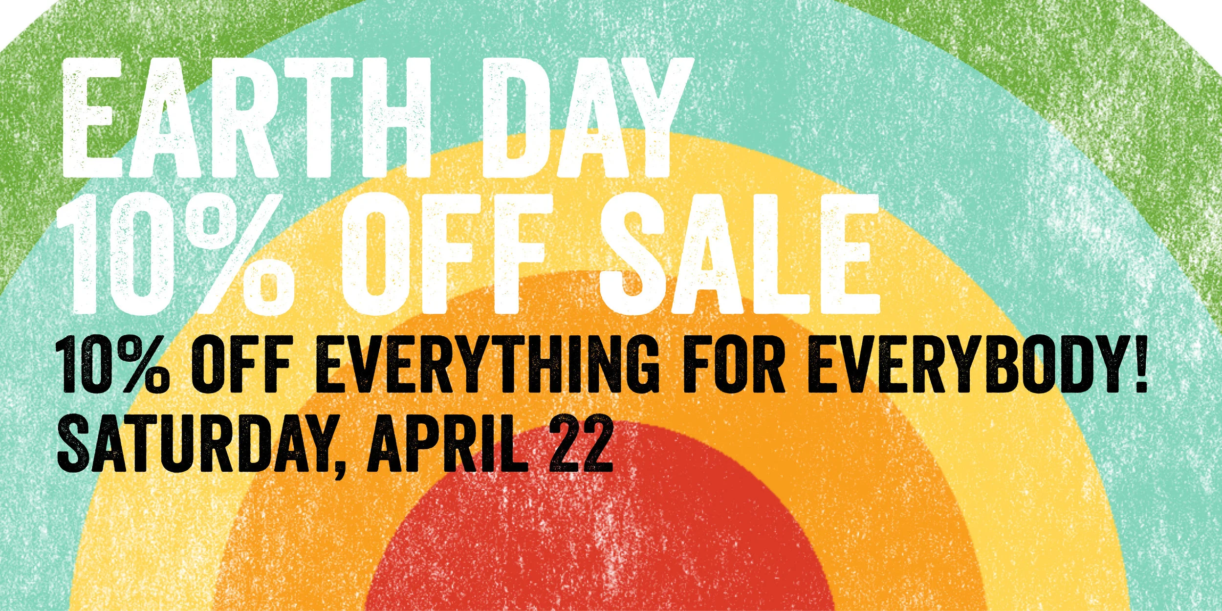 Earth Day is also 10% Off Day! Shop on Saturday, April 22nd to receive a 10% discount on your entire purchase. Everyone welcome!